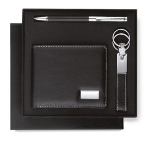 Set darovni Elegance muški novčanik PU, privjesak i roler crni u poklon kutiji